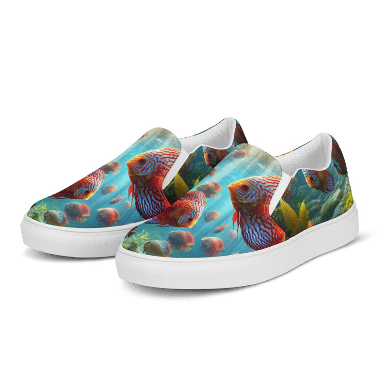 Dive into style with these 3D Discus Fish Slip‑On Shoes. Featuring a bold red pattern inspired by tropical Discus Fish. The artful design showcases swirling fish in vivid hues, printed on a breathable canvas. Perfect for sunny outings, beach vibe days, or as a unique gift, these shoes combine underwater elegance and everyday comfort.
