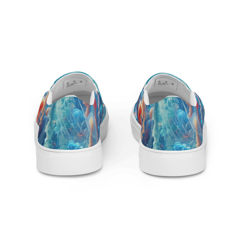 Make waves with these mesmerizing Jellyfish Shoes. Featuring a captivating underwater design that brings the beauty of the deep sea to your everyday style. With glowing jellyfishes drifting across a blue ocean backdrop, these shoes are both bold and ethereal. Perfect for anyone who loves marine life or standout fashion.