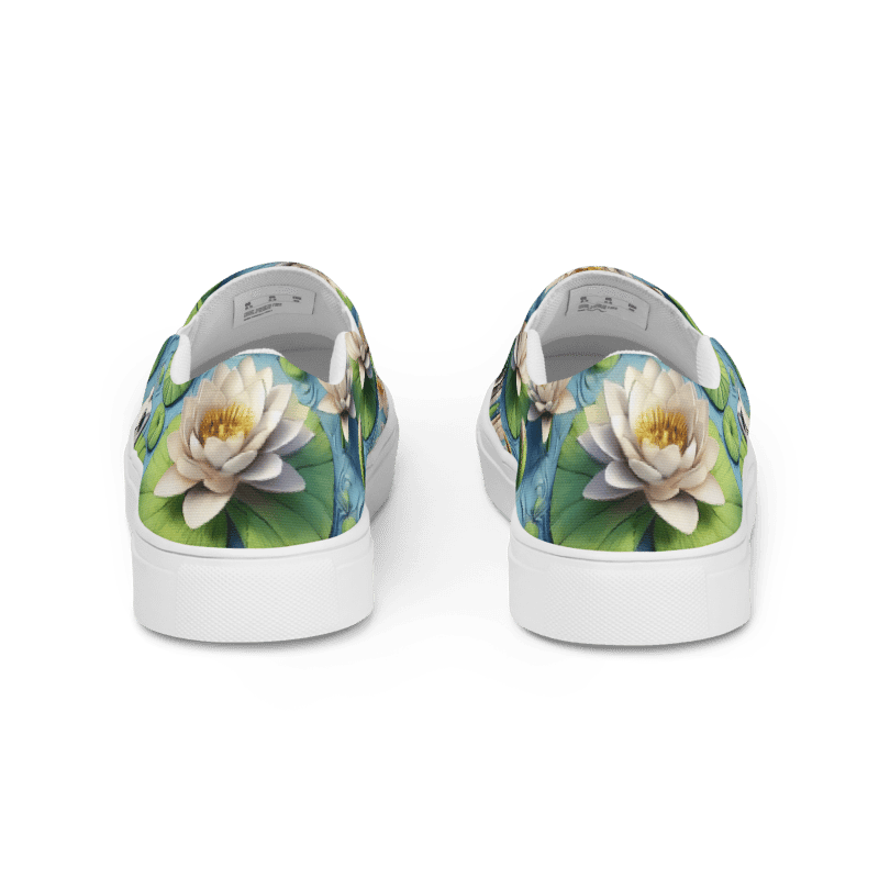 These charming frog lilies slip-on shoes bring a touch of nature to your style. Featuring cute frogs resting peacefully on green lily pads. The canvas material ensures all-day comfort, while the easy slip-ons make them perfect for casual outings. Ideal for nature lovers, garden enthusiasts or anyone who enjoys fun and unique footwear.
