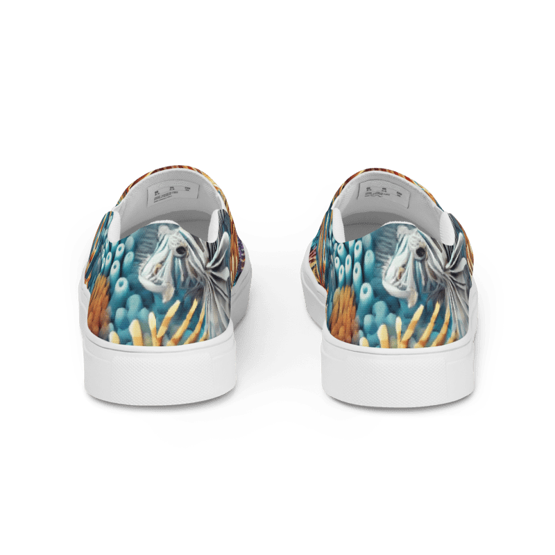 These vibrant sea life slip-on shoes feature a bold, colorful lionfish design inspired by the beauty of tropical reefs. Lightweight and breathable, they combine comfort with an eye-catching style. Perfect for ocean lovers and art enthusiasts, the slip-on design offers all-day ease with a flexible fit. Whether you’re strolling the beach or making a fashion statement these canvas shoes will stand out in the crowd.